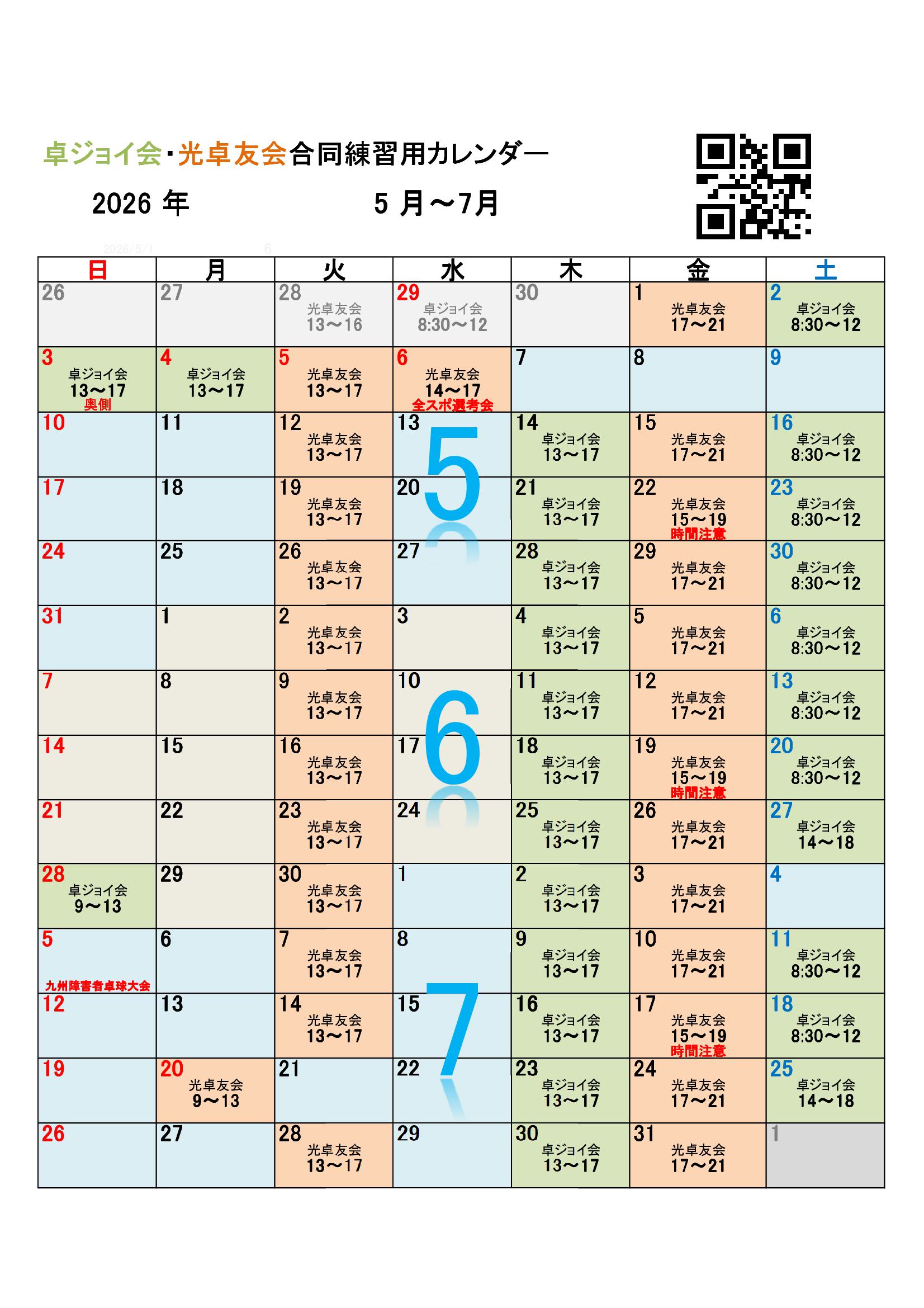 練習は香川県光卓友会との合同練習会となり、卓ジョイ会の会員は光卓友会の練習にも参加できます。